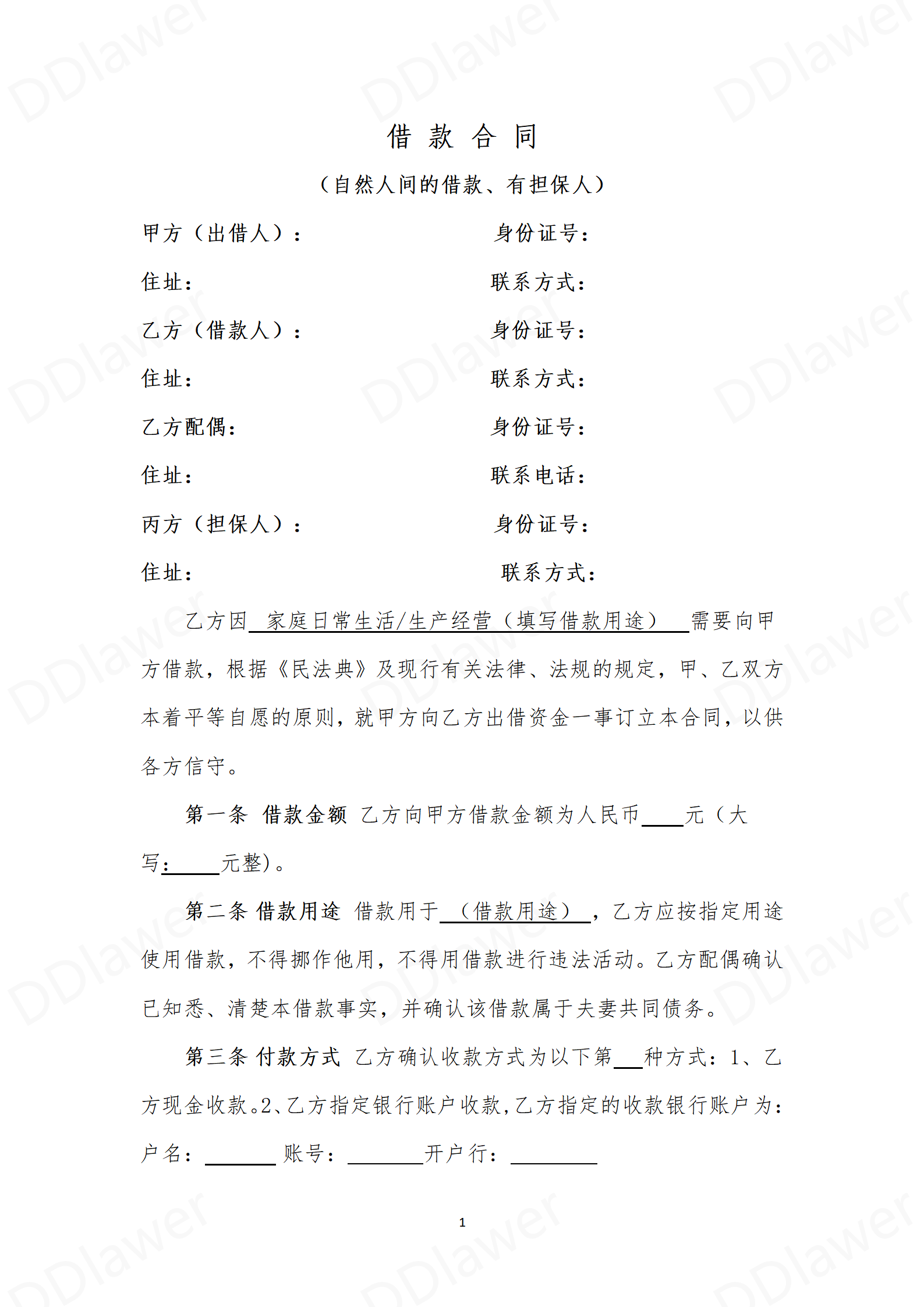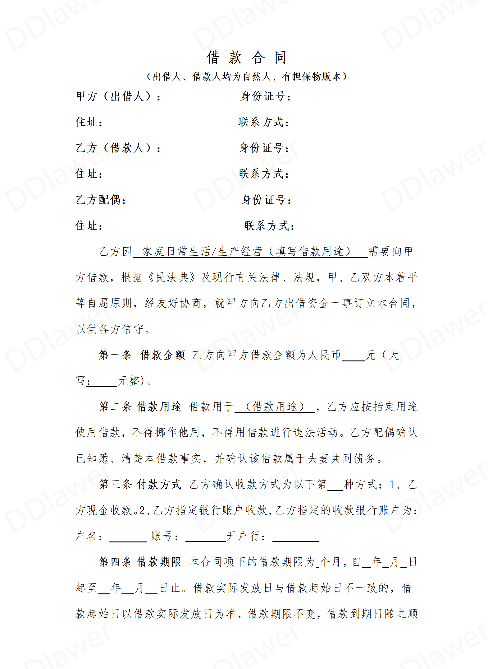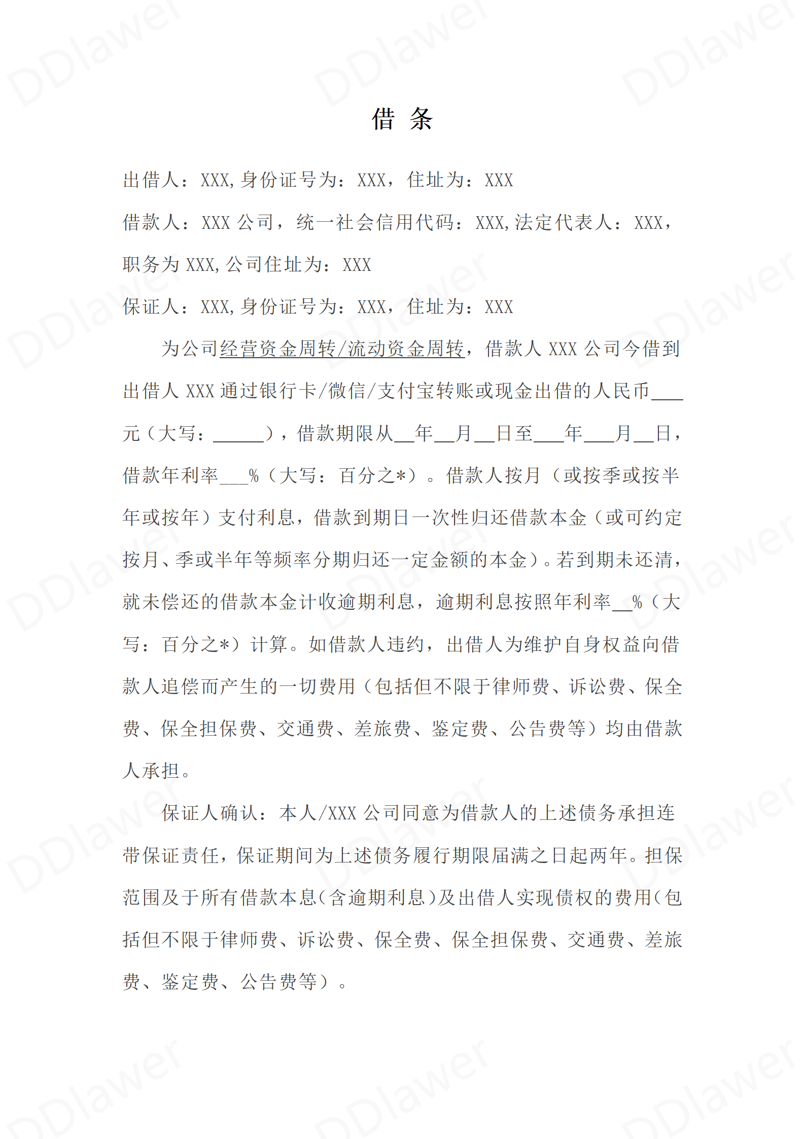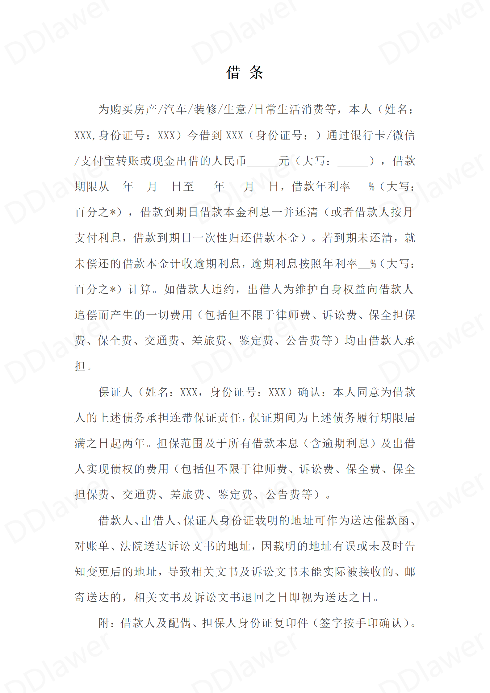 2025年最新借条模板(借款人为自然人、有保...