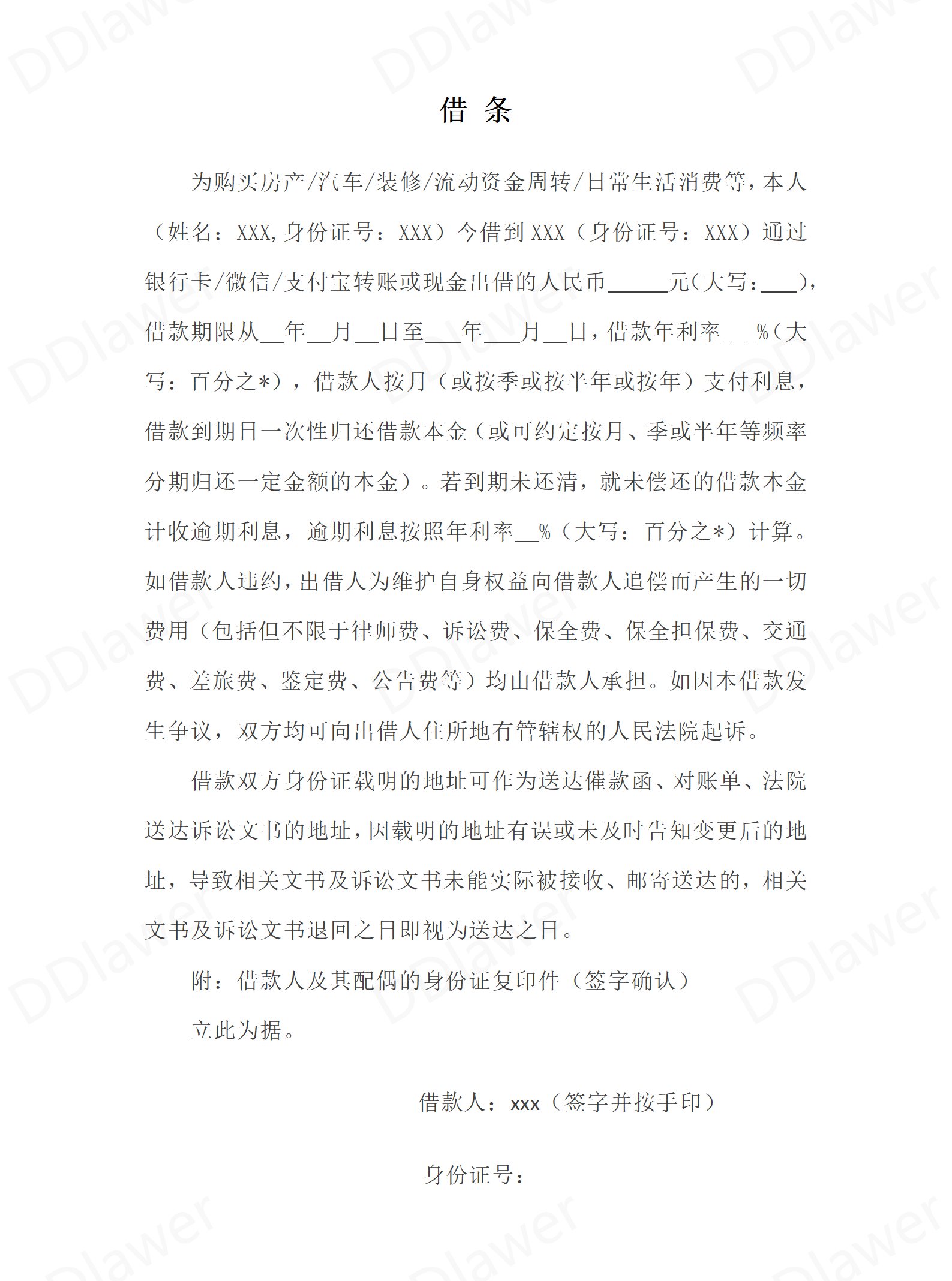 2025年最新借条模板(借款人为自然人、无保...