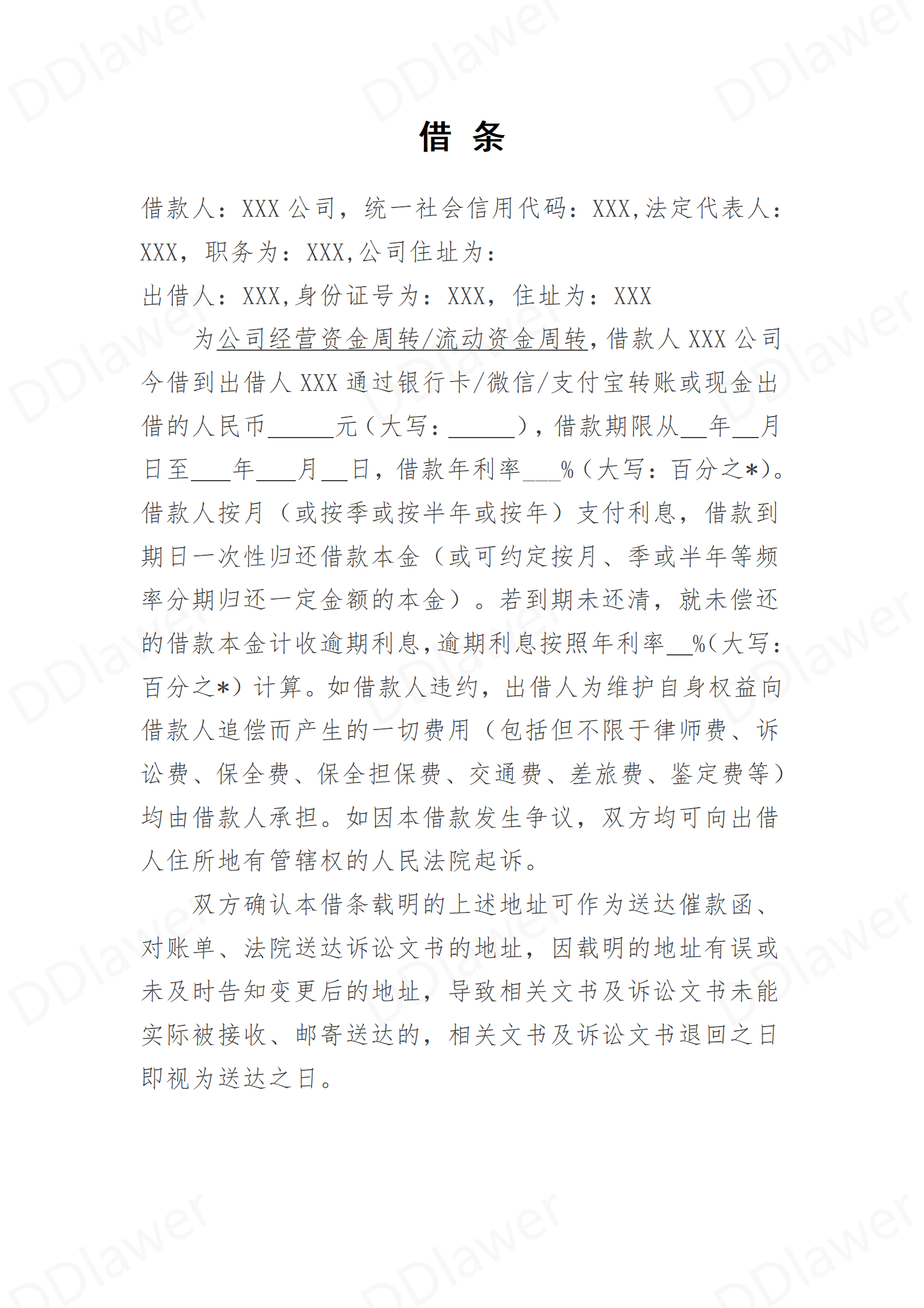 2025年最新借条模板(借款人为公司、无保证人版)